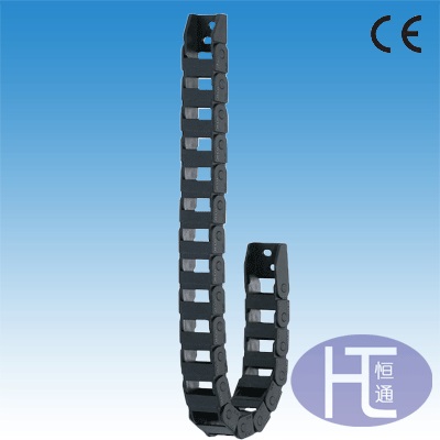 具有高的壓力和抗拉負荷,良好的韌性高彈性耐磨性阻燃。拖鏈每節(jié)四面不可打開,整體安裝,工作中輕便靈活,穩(wěn)定性和承重型良好,適合電纜較小的運動場合,內(nèi)腔7mm×7mm,外腔為10mm×12.5mm,彎曲半徑15mm。在正常架空使用情況下,可達600萬往復(fù)運動次數(shù);